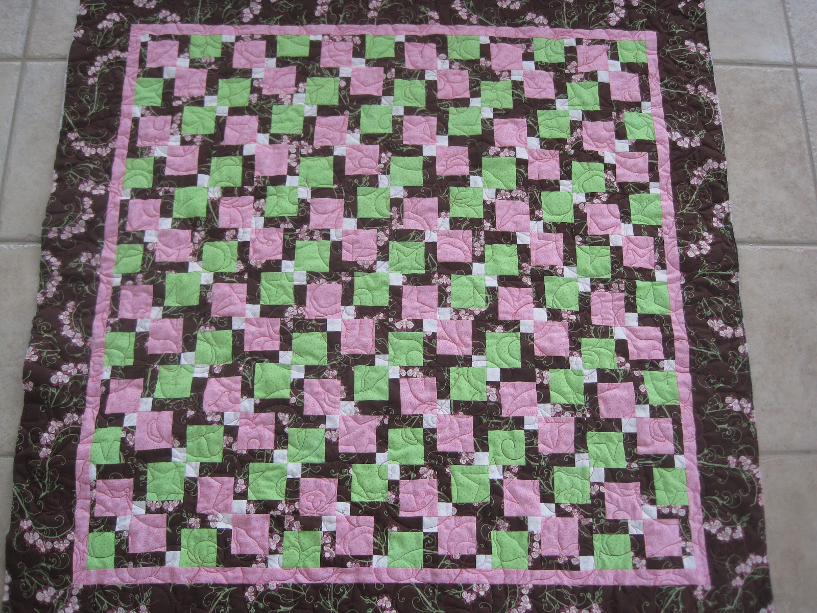 This is for a little girl quilted with a sweet teddy bear pantograph. They are both backed with soft Minkee.